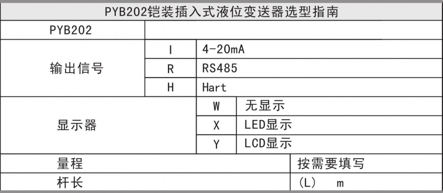 The PYB202 armored insertion liquid level transmitter is made up of high-performance diffused Silicon pressure sensors as measurement elements. The stainless steel fully welded structure is safe and reliable, and there is no leakage. Suitable for liquid level measurement of various media in petrochemical, metallurgical, electric, water supply and drainage, environmental protection and other systems and industries.