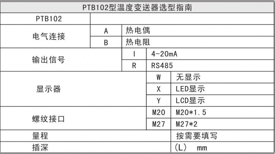 The PTB102 uses an imported temperature sensitive element and is processed by a dedicated integrated circuit to output a 4-20mA current signal and an RS485 digital signal. The product has the characteristics of high precision, good stability, long life, high reliability, and convenient installation. Suitable for measuring fluid temperature in petroleum and chemical industry.