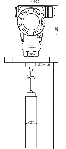 PYB203集氣筒式液位變送器由不銹鋼集氣筒,不銹鋼毛細管及接線盒組成。集氣筒投入到被測液體中后,集氣筒內(nèi)部的氣體被壓縮,通過毛細管將壓力傳遞到傳感器,由此避免了傳感器與被測液體的直接接觸,適用于高溫有腐蝕性場合,有效的解決了高溫腐蝕液體以及污水液位測量的難題。